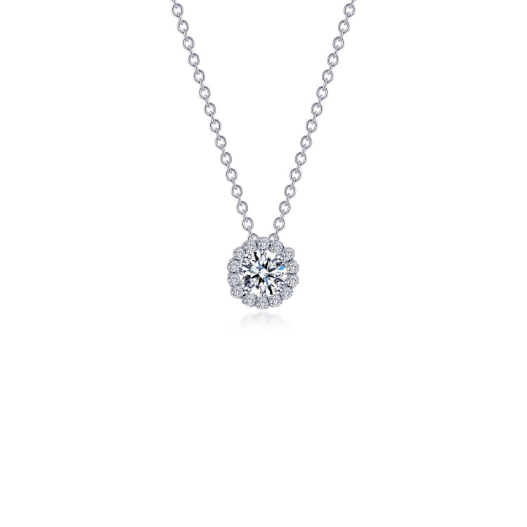 Timeless elegance for everyday wear. This halo necklace is set with Lafonn's signature Lassaire simulated diamonds in sterling silver bonded with platinum.